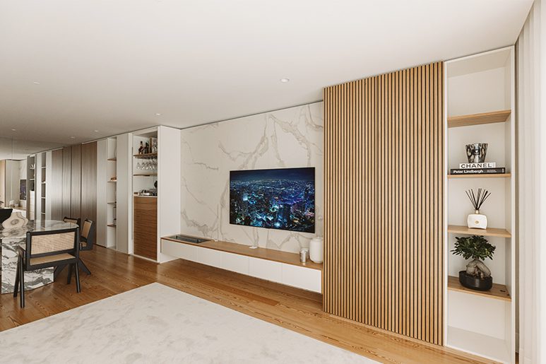 Em parceria com a Cácio – Sublime Furniture, desenvolvemos o móvel de sonho para a sala da Mariana Machado.